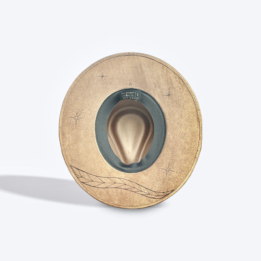 Lightweight, structured, and flattering, each hat features a high-quality rancher silhouette that complements different face shapes and personal styles. The hand-burned artwork makes every piece completely unique, durable, and filled with intention.