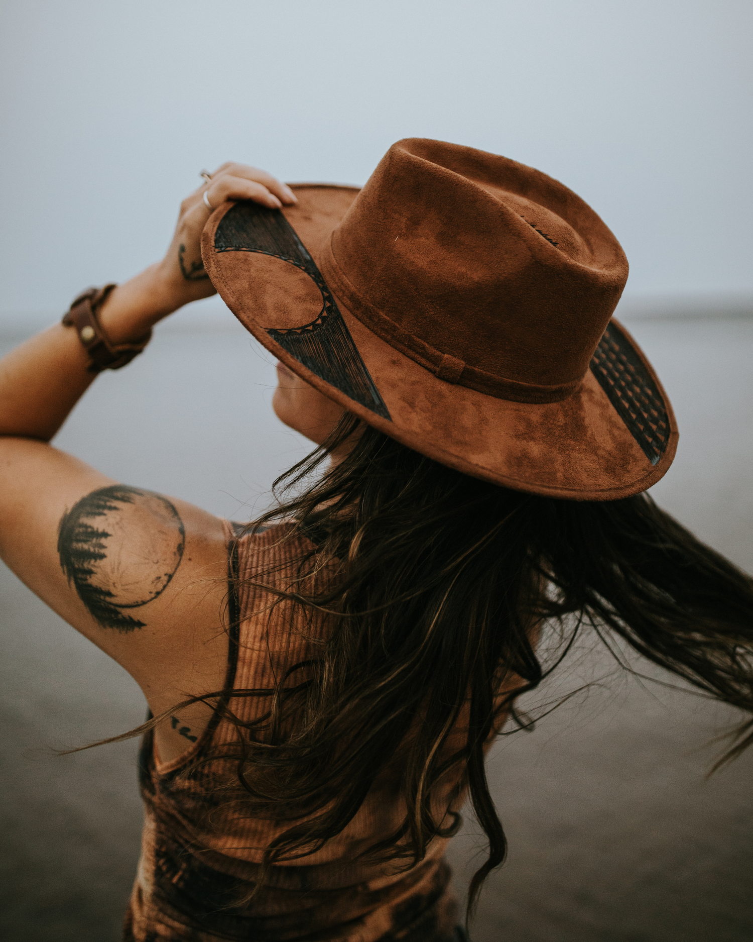 Each piece in my collection is made with love and fire—crafted using handmade or locally sourced wood wherever possible, ensuring a connection to nature and sustainability. From burned vegan suede hats to wooden boxes and bowls, leather earrings, bags, and bracelets, to apparel and so much more, I am always striving to find new ways to be creative.