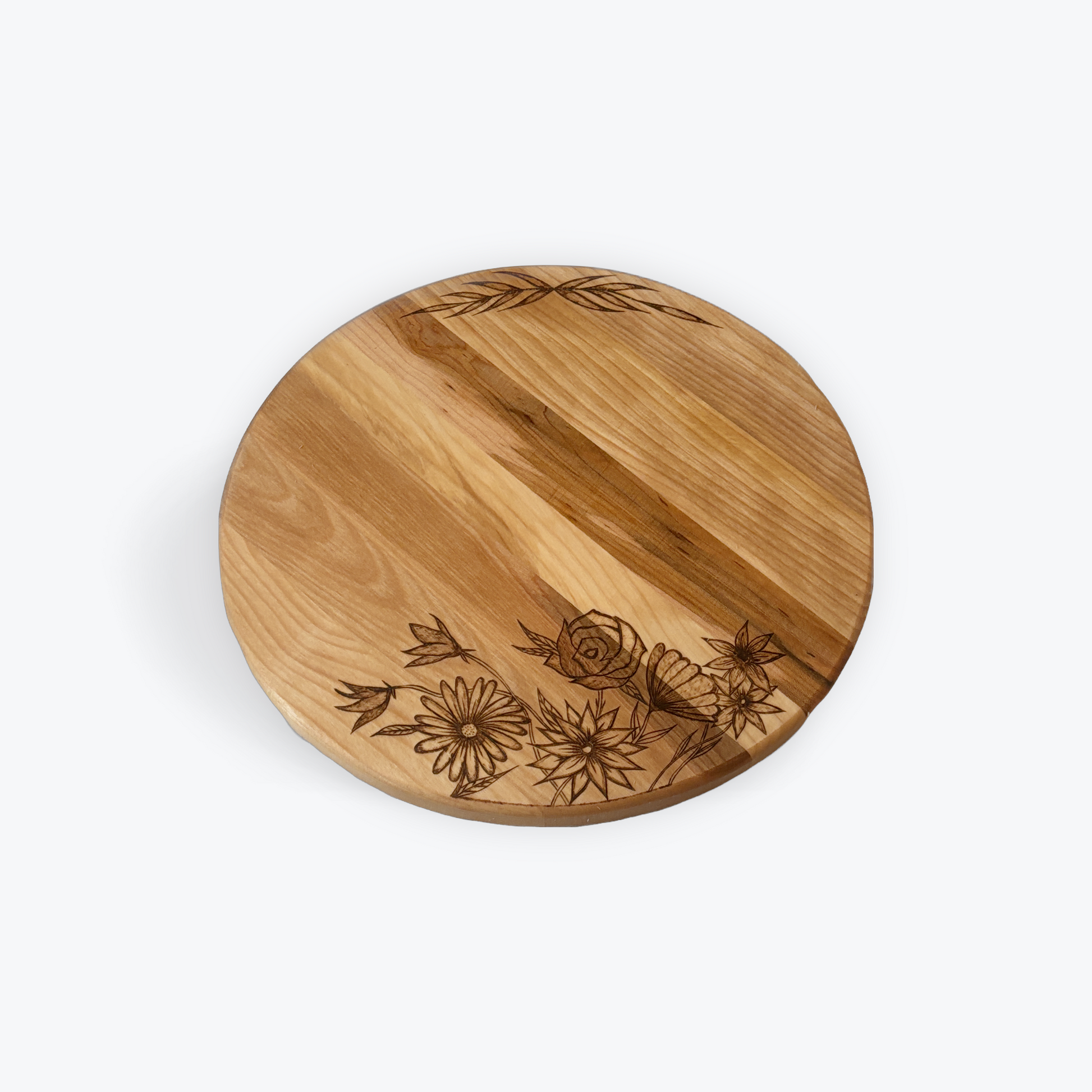Crafted from premium Canadian hardwood maple, these 11" round charcuterie boards bring natural warmth, durability, and functionality into any kitchen or creative workspace. Each board is individually hand-burned, giving every piece its own character and one-of-a-kind artisanal finish.